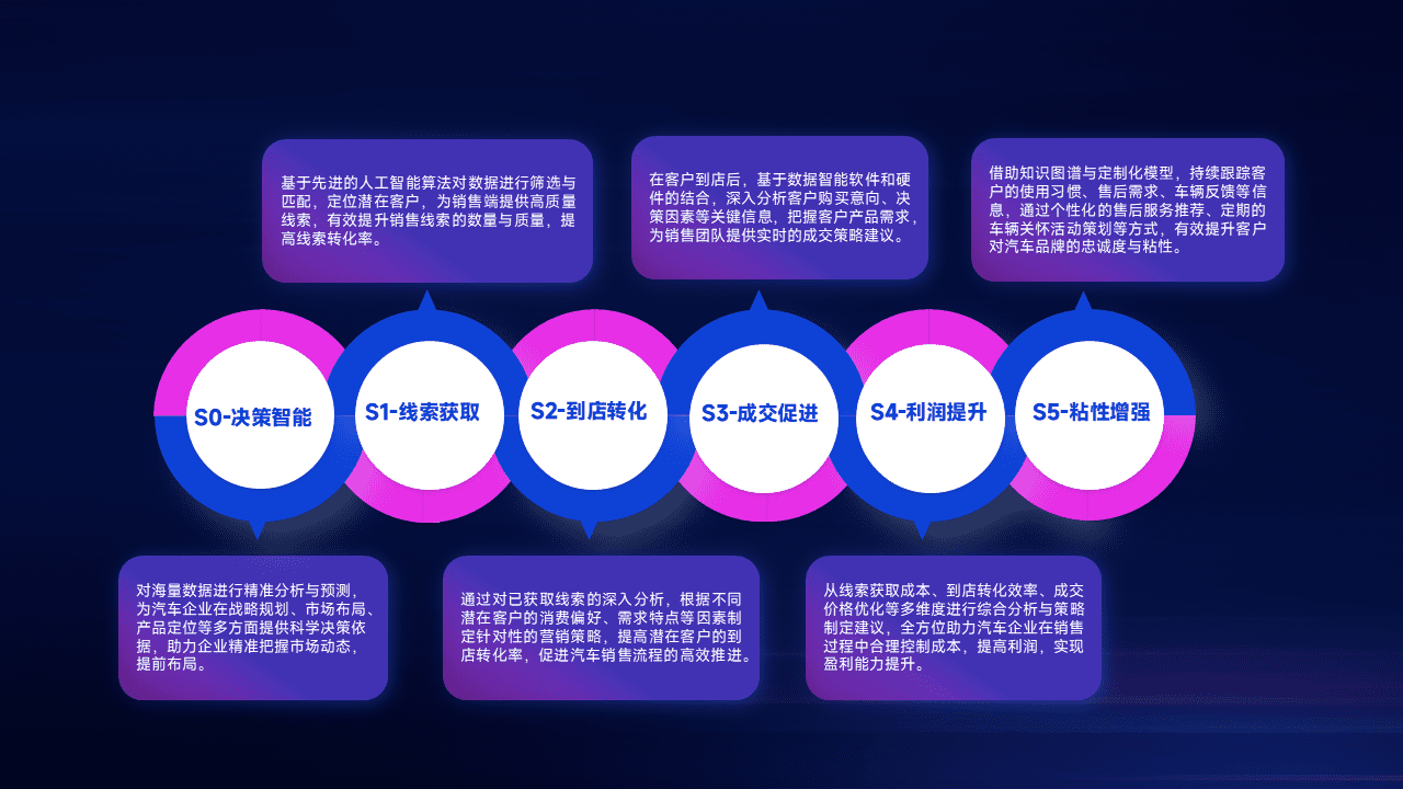 通过拓宽潜在客户来源、、、、优化线索分配并提高到店转化率,,,以增强销售效率。。。同时,,利用线索数据不断优化分析模型,,,,有效提升转化率,,,扩大营销影响力。。。。